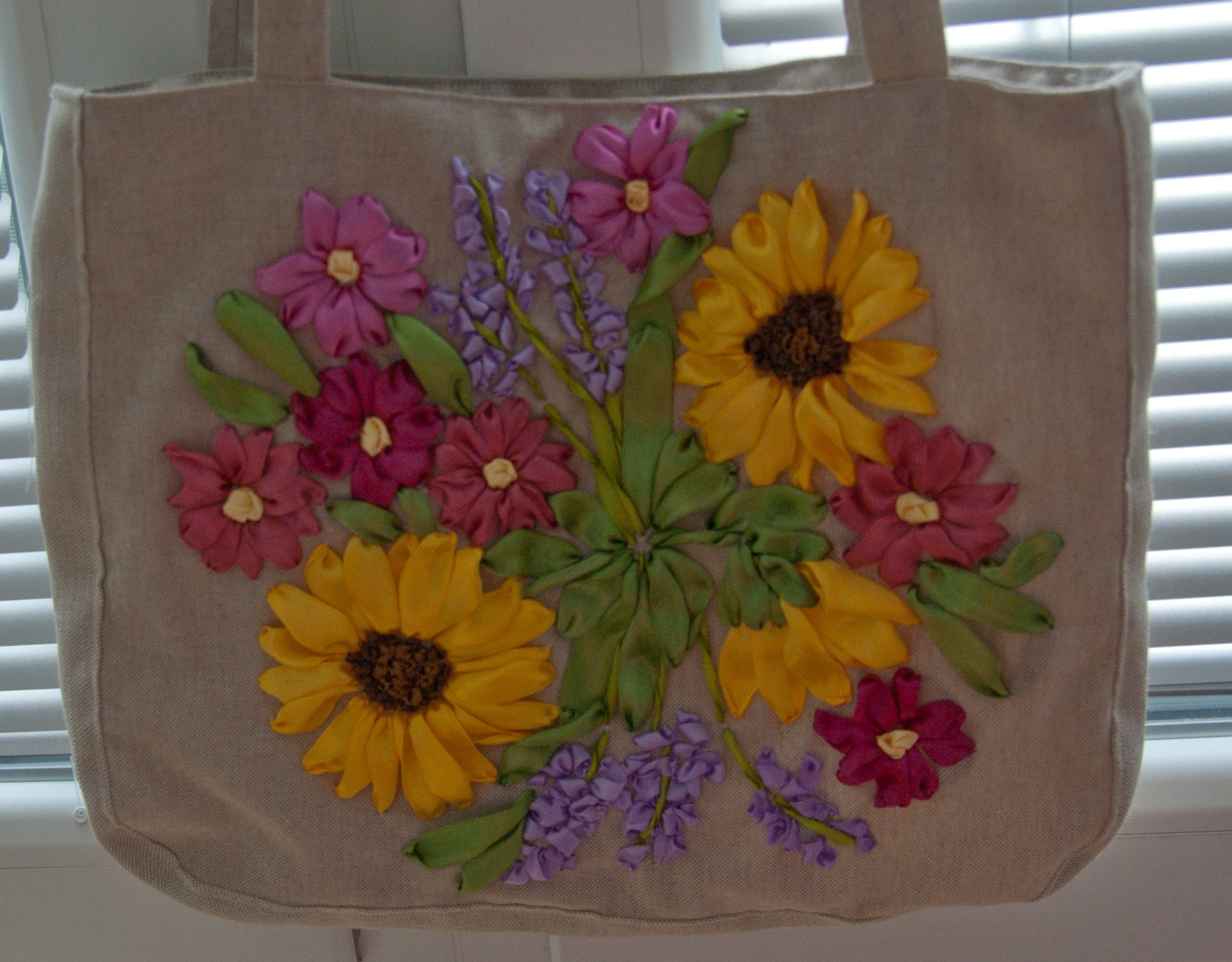 Vyšívané kvety na taškách, kabelkách, obrázkoch, obrazoch , obrusoch, obrúskoch, prestieraniach, vankúšoch